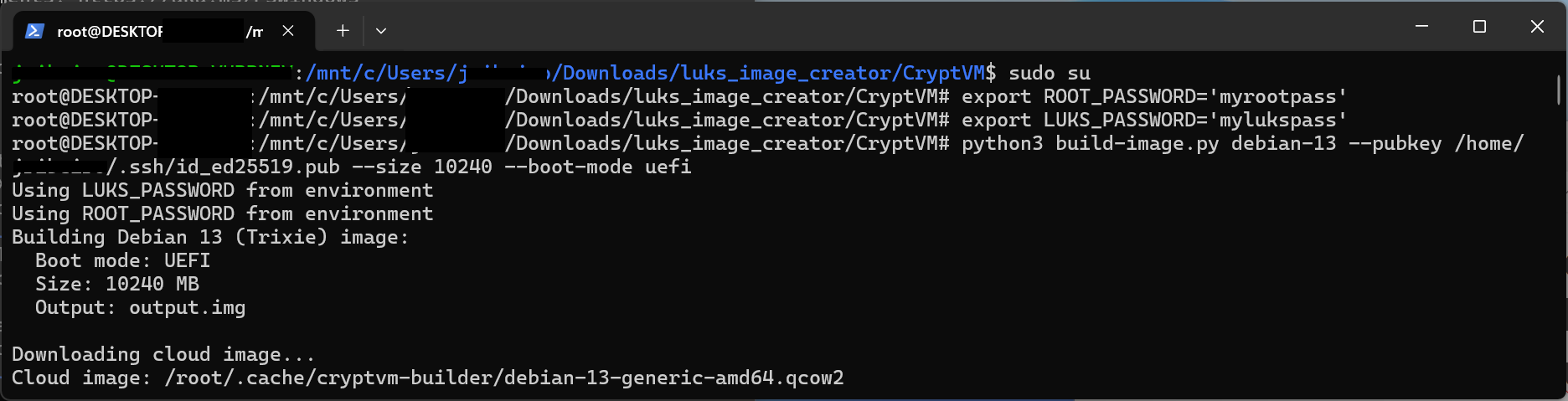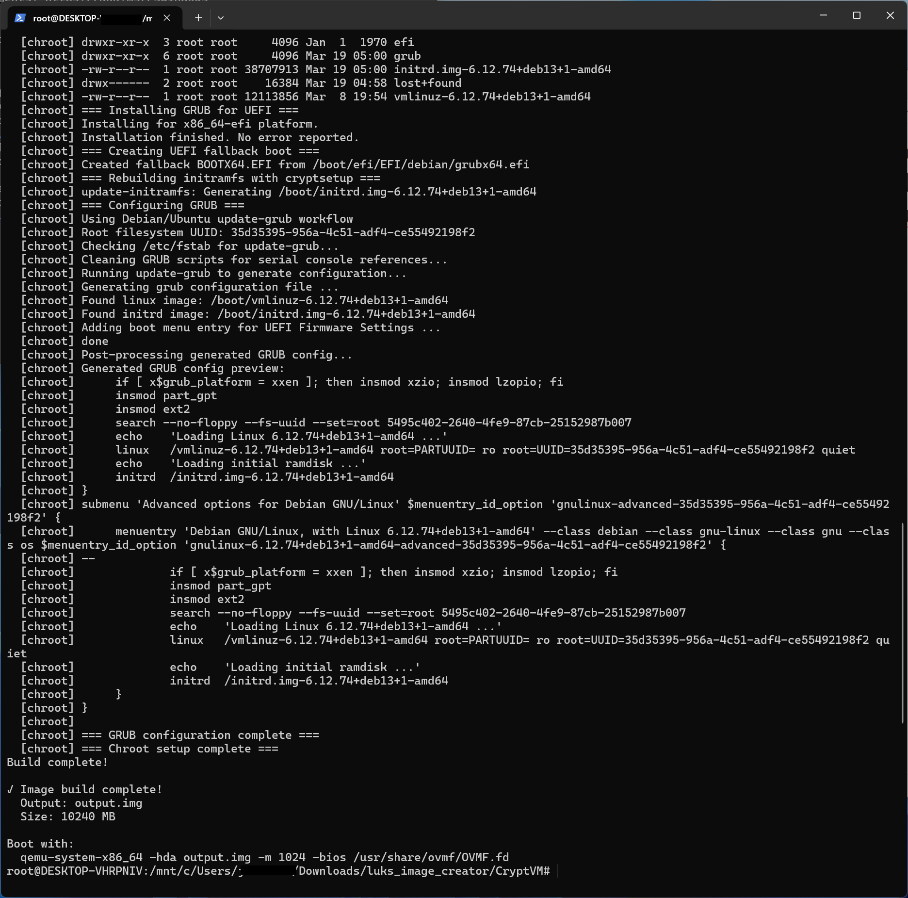 Then, we will create a debian 13 image. The "--boot-mode uefi" argument is required if you want to use SEV-SNP in the Epyc VPS.
